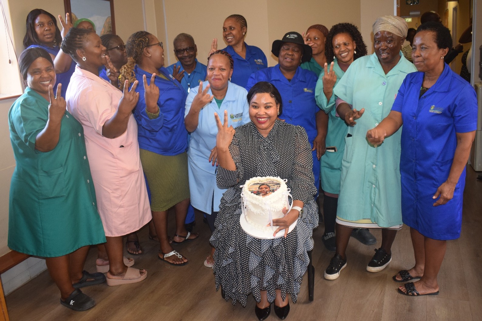 Head of Department, Mpho Mashamba, marked her birthday in a heartfelt and meaningful way by celebrating alongside with department’s First Line of Hygiene.