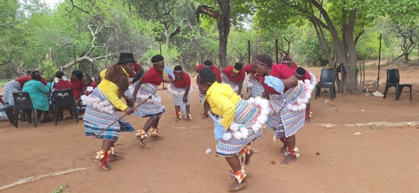 Keeping the audience entertained, women from Tshikuyu village performing the malende dance during the Landcare Awareness Campaign event at Tshikuyu Village under Musina Local Municipality.