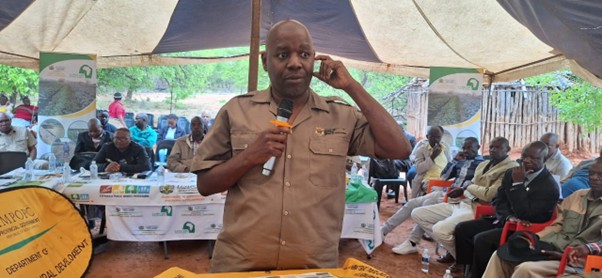 Mr Mathivha Nimrod from the National Department of Agriculture presenting during the Landcare Awareness Campaign event at Tshikuyu Village under Musina Local Municipality.